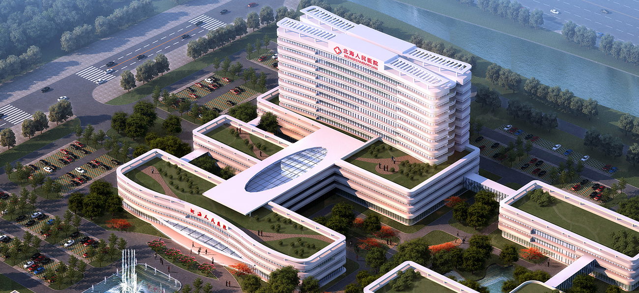 北海人民醫(yī)院設(shè)計(jì)將“以人為本,管理便捷;衛(wèi)生安全,運(yùn)行高效;節(jié)能環(huán)保,綠色生態(tài)”的概念,貫穿整個(gè)設(shè)計(jì)過程,強(qiáng)調(diào)對(duì)環(huán)境的尊重,包括院區(qū)所在的大環(huán)境及院區(qū)內(nèi)部的小環(huán)境。通過深入的調(diào)查與分析,力爭(zhēng)使整個(gè)建筑群與自然環(huán)境和景觀和諧相處,病人在這樣的環(huán)境中能夠看到綠樹、藍(lán)天,呼吸到新鮮的空氣,激發(fā)其對(duì)生命的渴望和戰(zhàn)勝病痛的意志,從而達(dá)到積極配合治療的目的,同時(shí)工作人員常年工作于此,能身心舒暢,保持較高的工作效益。