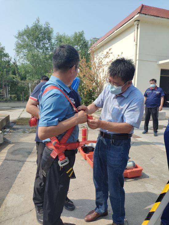 6月17日上午,逸涇水務(wù)公司在4#污水泵站參加市城鄉(xiāng)水務(wù)發(fā)展中心消防演練活動,本次演練特邀濱州市消防救援支隊二級消防士張寶寶和張政進(jìn)行現(xiàn)場指導(dǎo)示范,對安全帶、救援三腳架、正壓式呼吸機、干粉滅火器等裝備器材的正確操作進(jìn)行了詳細(xì)講解。