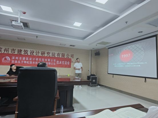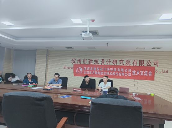 為加強科學(xué)技術(shù)交流,及時了解新型建筑材料性能。近日,公司組織與北京東方雨虹防水技術(shù)有限公司就關(guān)于防水材料應(yīng)用及施工,以及車庫頂板零坡度虹吸排水系統(tǒng)的應(yīng)用技術(shù)交流會。公司總建筑師,總工辦及各分公司、所建筑專業(yè)技術(shù)人員參加。
